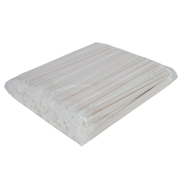 Bolsa con 200 Bombillas o Pajitas de Cartón de 19.6 cm. de largo x 0.6 cm. de diámetro c/bombilla. Cada bombilla sellada en forma individual, dentro de una bolsita de papel blanco.